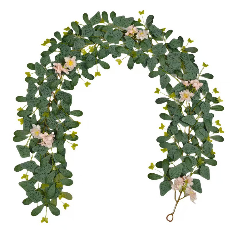 蝴蝶仿真藤条尤加利藤条室内墙挂室内装饰人造花环藤蔓装饰批发