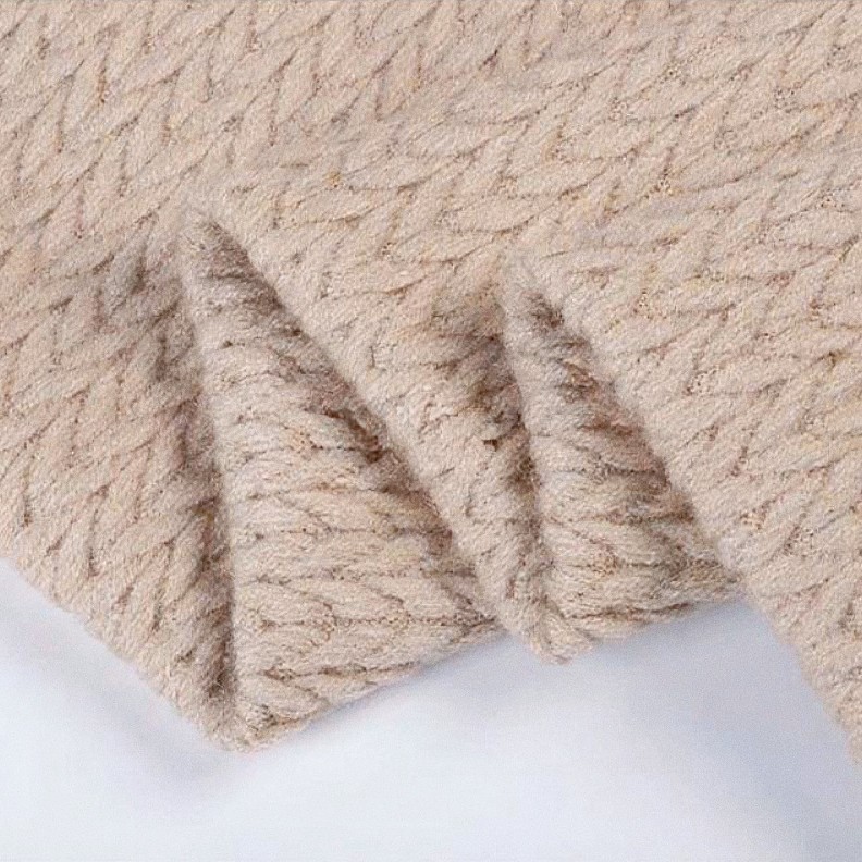 粗针辫子提花面料麦穗花仿羊绒提花布柔软舒适 女装毛衣外套