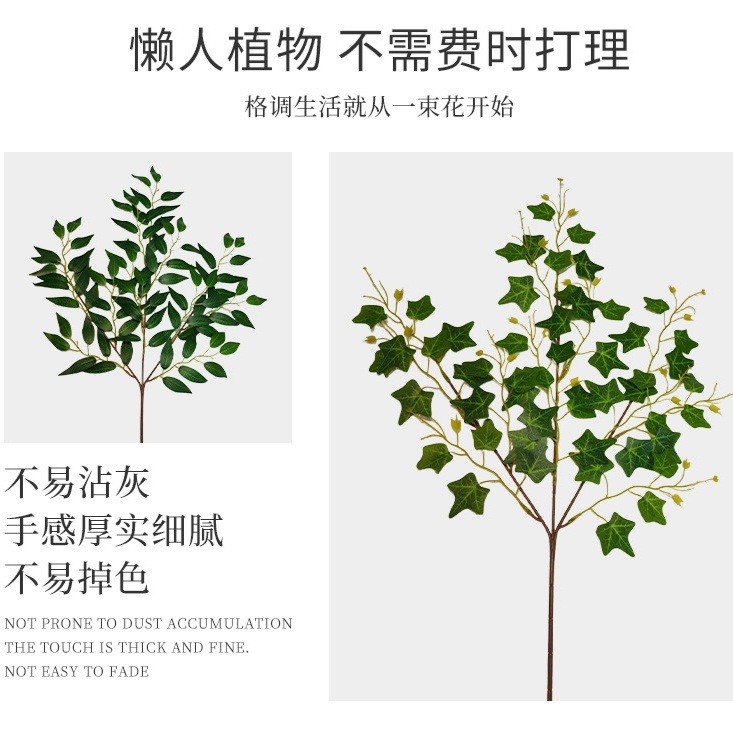 仿真尤加利叶柳叶地瓜叶爱心叶3叉13目平面支森系客厅家居插花
