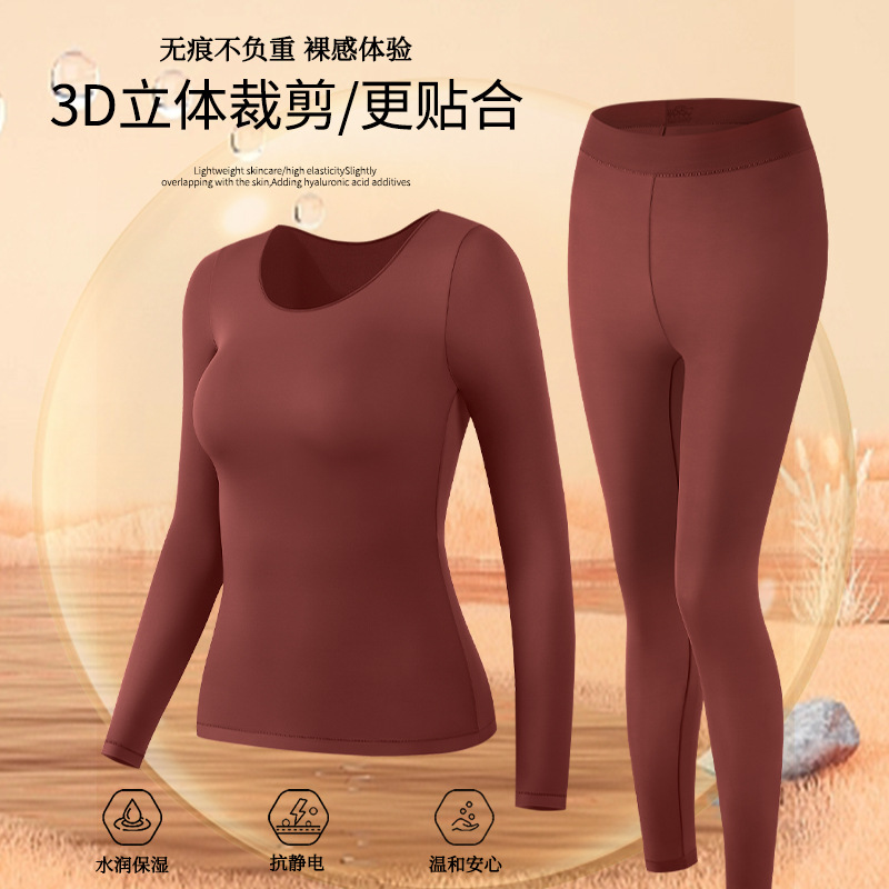 玻尿酸肌底衣保暖长袖裤发热美肤衣秋衣秋裤加大码打底保暖套装女