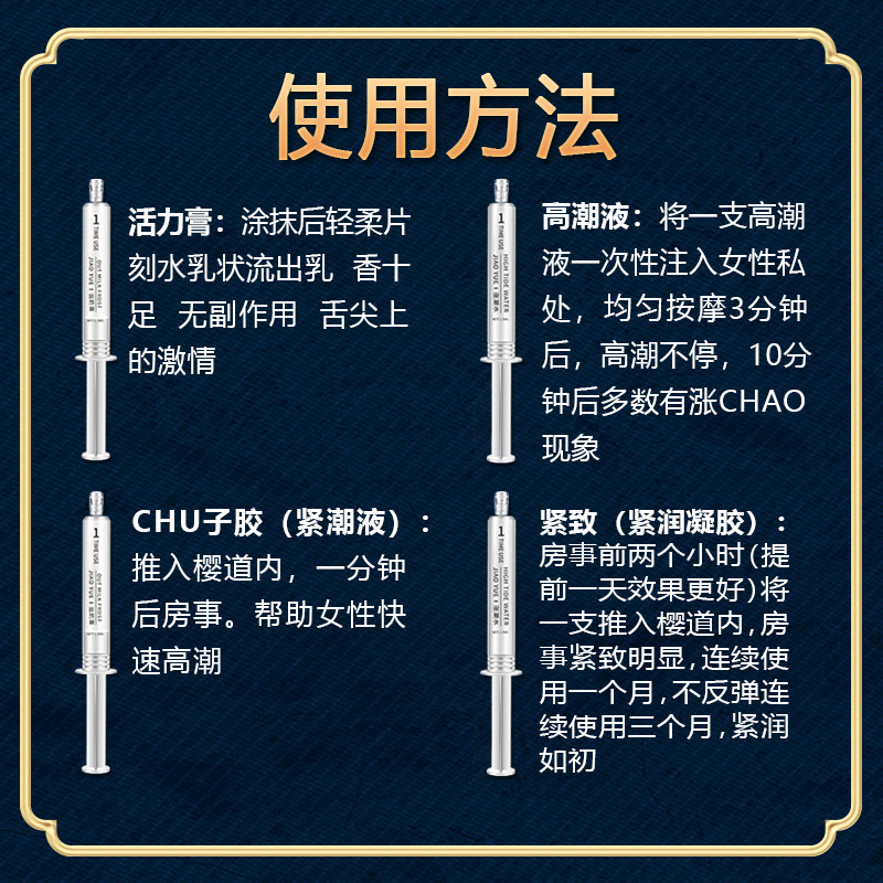 规格 | 交悦井喷液1.5ml*4 | | 规格 | 激情套装-井喷液1.5ml*3 |