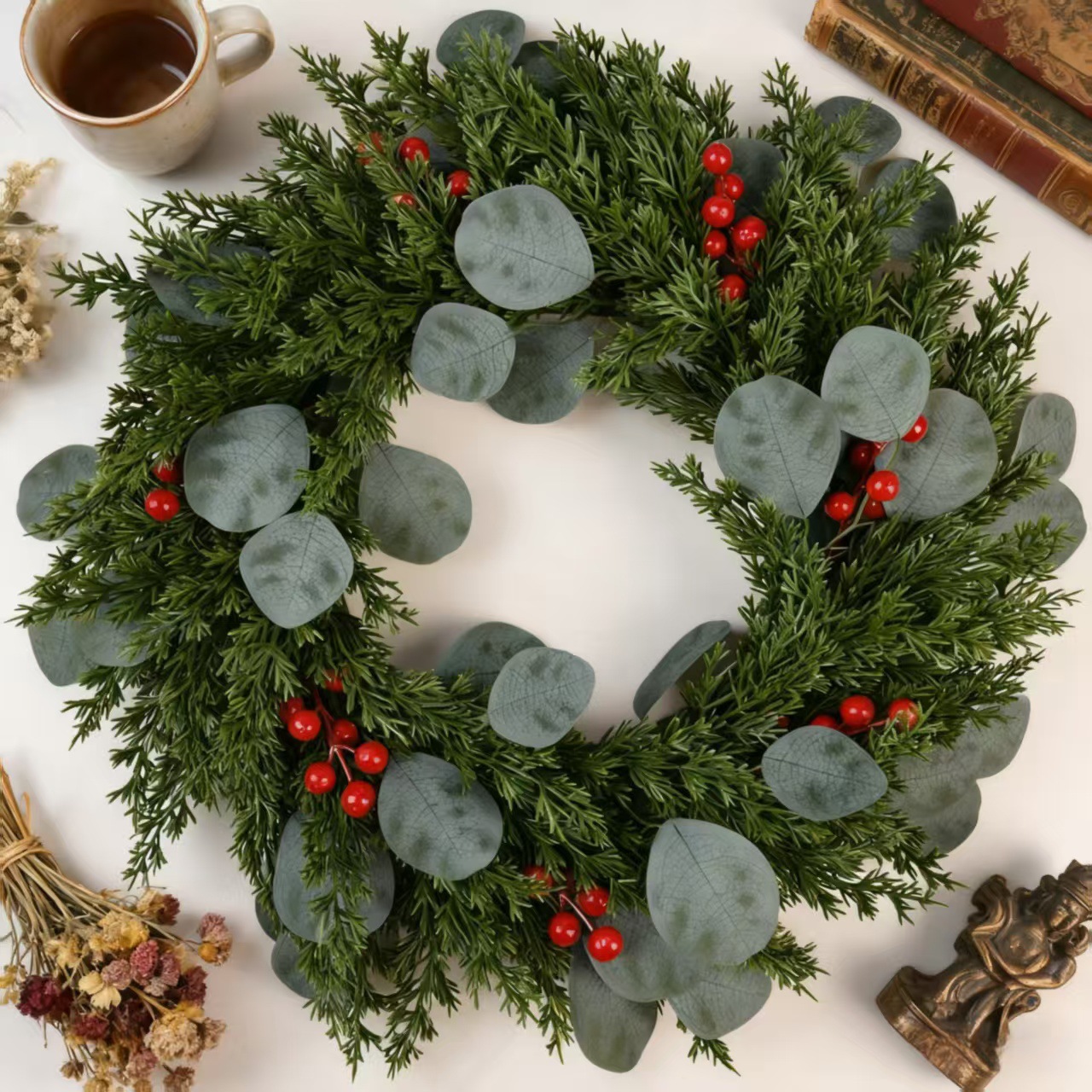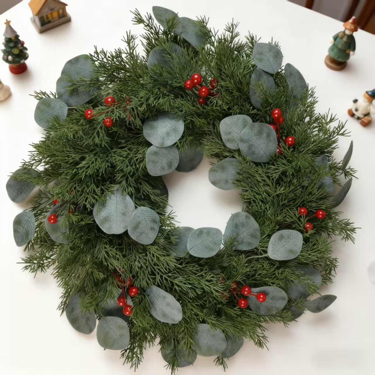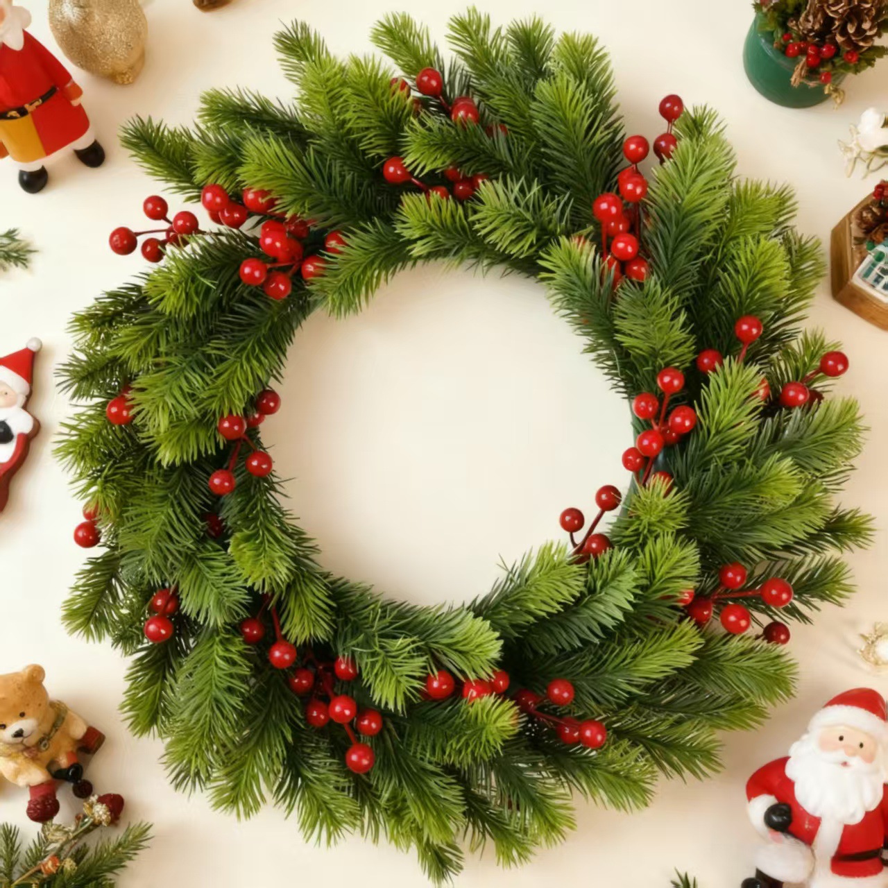 跨境亚马逊批发圣诞人造节节松红果花环藤圈仿真绿植橱窗家居装饰