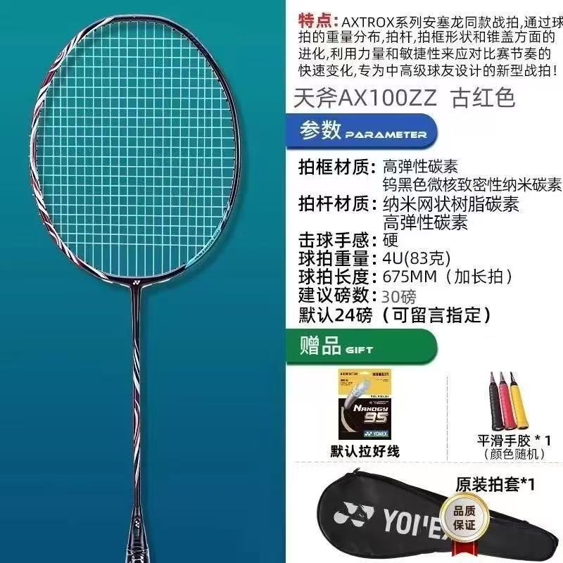 工厂直发天斧100zz古红色尤克斯羽毛球拍4U全碳素超轻耐打单拍