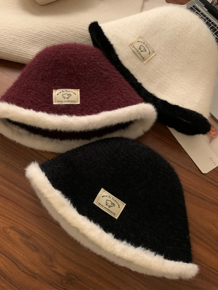黑色毛绒渔夫帽女秋冬季2025新款显脸小水桶帽韩版百搭保暖帽子潮