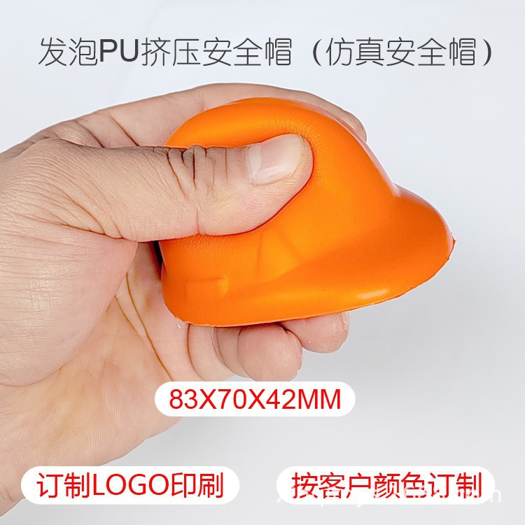 PU发泡仿真道具安全帽 批发聚氨酯压力球捏捏乐可调色号加印LOGO