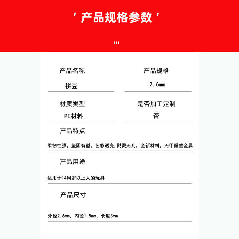 厂家直销 2.6mm融合拼豆批发量大从优 新型PE材料熨烫无孔