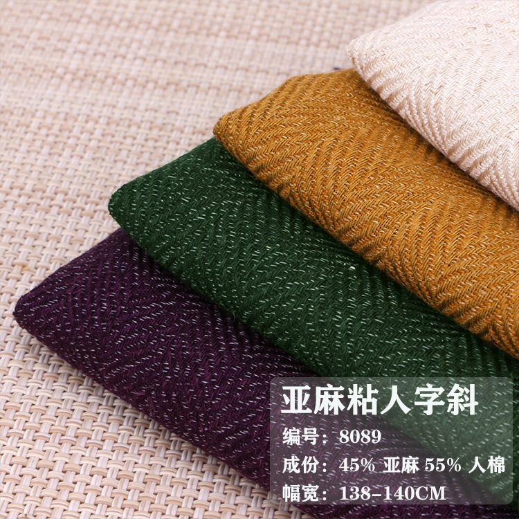 人棉麻面料 麻粘鱼骨纹斜纹布 柔软舒适垂感好亚麻粘人字斜纹面料