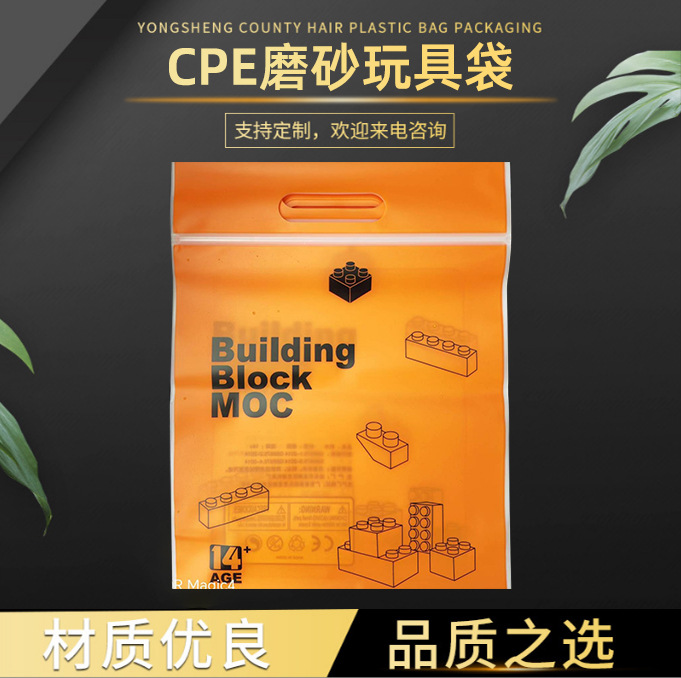 CPE磨砂自封拉骨彩印袋毛绒玩具裤袜服装积木饰品包装袋手提袋