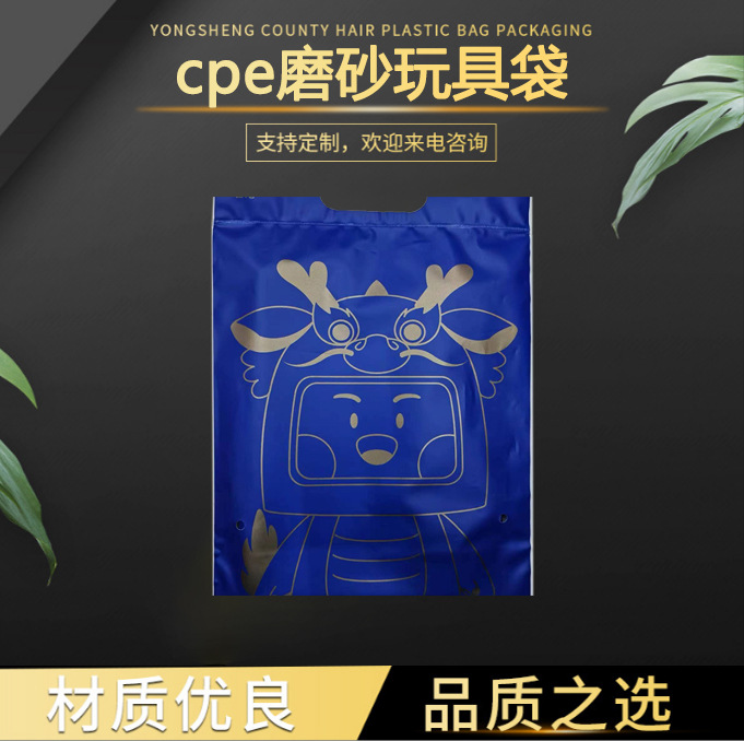 厂家生产CPE磨砂+PPE高透明龙年款毛绒公仔玩具服装包装袋磨砂手