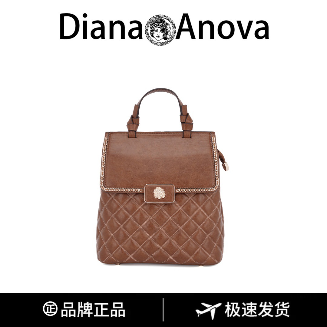 DianaAnova菱格绣线双肩包包女新款真皮时尚气质百搭款背包小背包