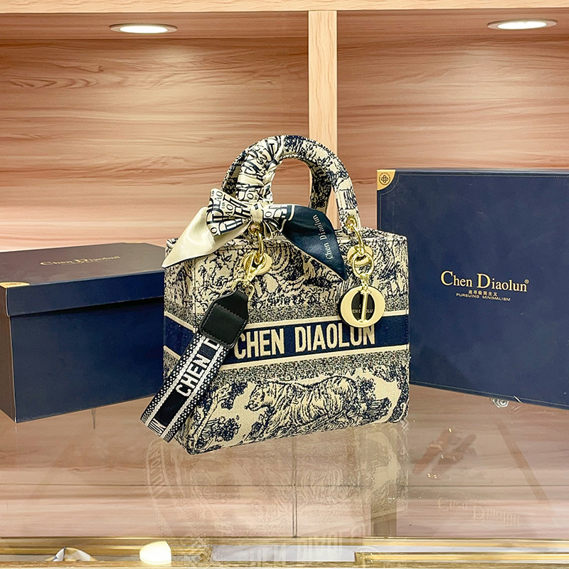 DIAOLUN动物园戴妃包包女2025新款高级感刺绣手提包单肩斜挎包包