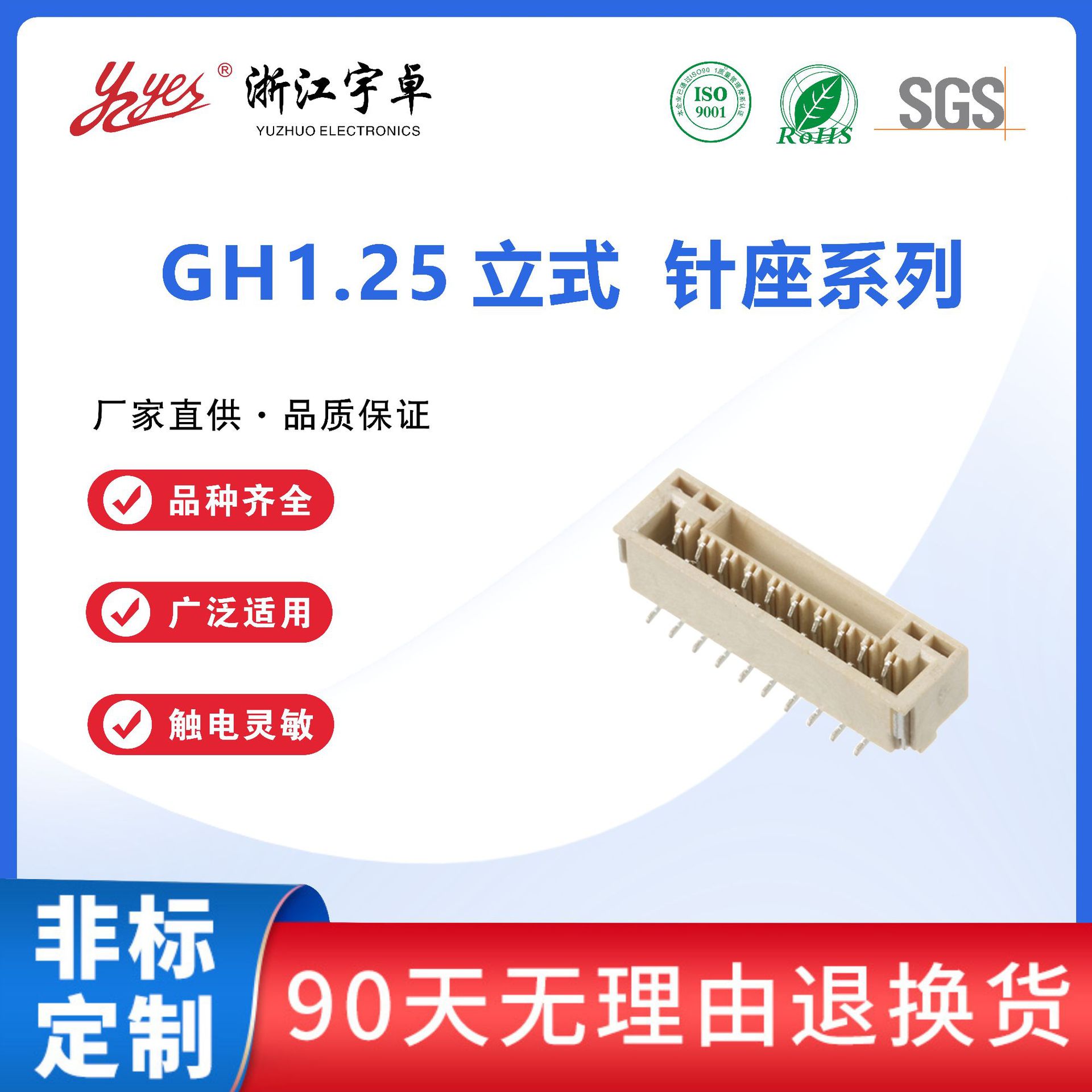 GH1.25mm立式贴片针座 间距1.25MM 2-10P 带扣锁立贴连接器