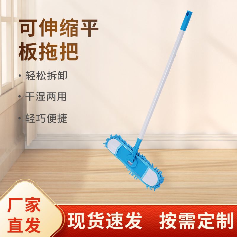 可伸缩双面雪尼尔拖把批发多功能清洁除尘赖人干湿两用拖把厂家
