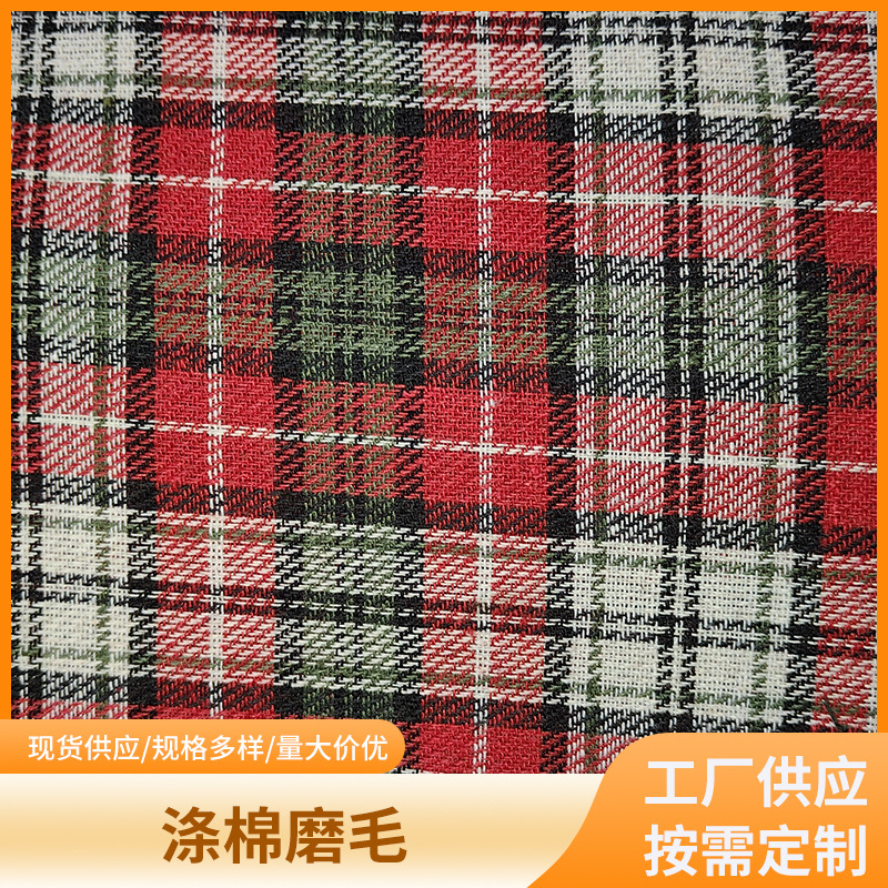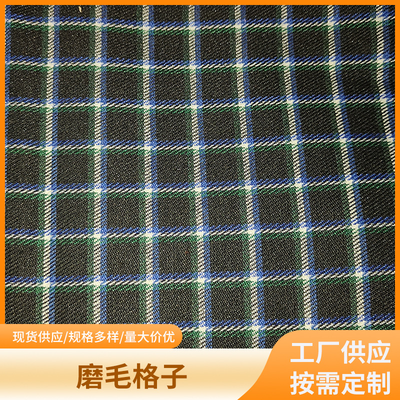 厂家现货16支涤棉格子布 秋冬连衣裙休闲服面料 斜纹磨毛格子布料