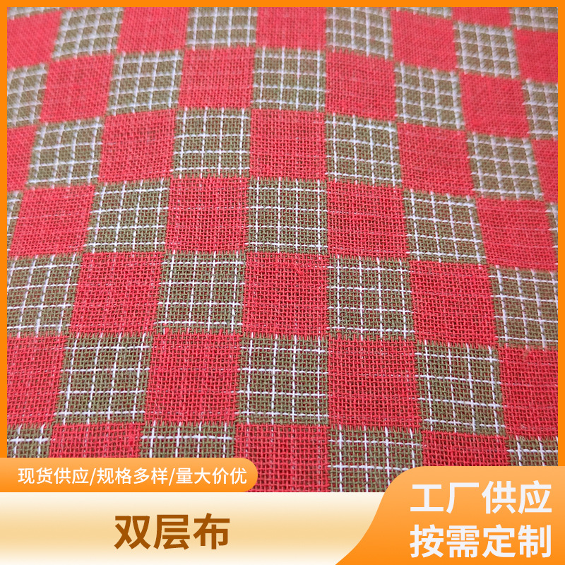 现货双层布服装面料 女装童装连衣裙色织布料 双层格子面料批发