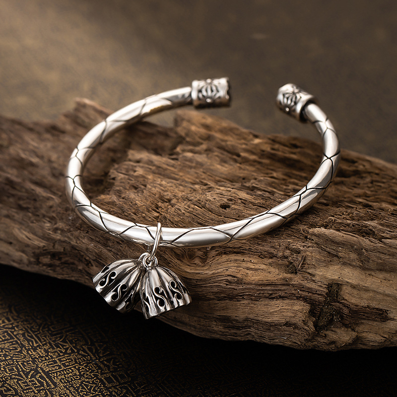复古传承古银莲蓬开口手镯简约设计感新款情人节送女友之生日礼物