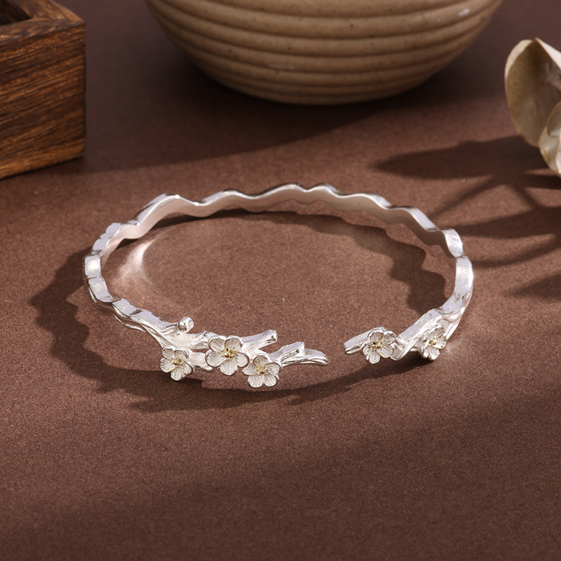 抖音直播白铜镀银铃兰花开口手镯国风气质蝴蝶可调节手环送女朋友