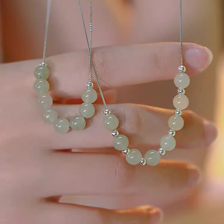 串珠和田玉圆珠项链女士小众设计感文艺复古新中式锁骨链批发吊坠