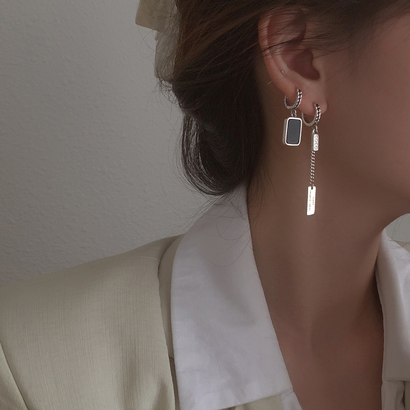 不对称字母方牌耳扣耳环女生小众设计感复古个性气质流苏耳饰批发