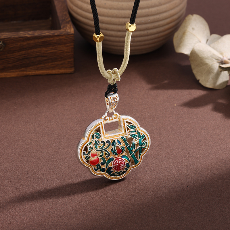白铜镀银项链珐琅彩描金竹节葫芦吊坠项链新中式国风福禄吊坠