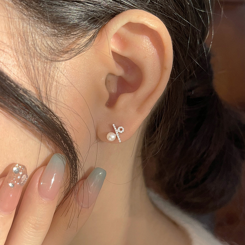 双拼闪钻爱心珍珠耳钉耳环轻奢小众设计感时尚ins风气质甜美耳饰