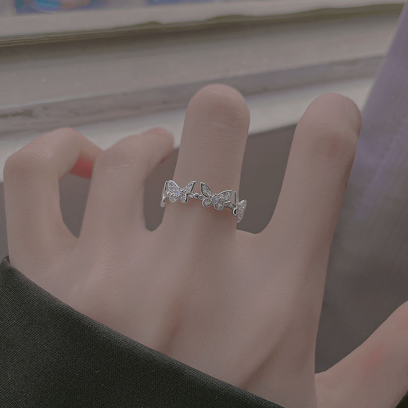 闪钻大蝴蝶开口戒指女轻奢小众设计感ins风时尚个性精致指环批发