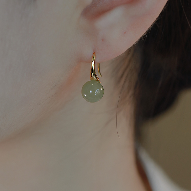 单颗和田玉珠耳钩耳环女小众设计感复古新中式气质耳坠耳饰品批发