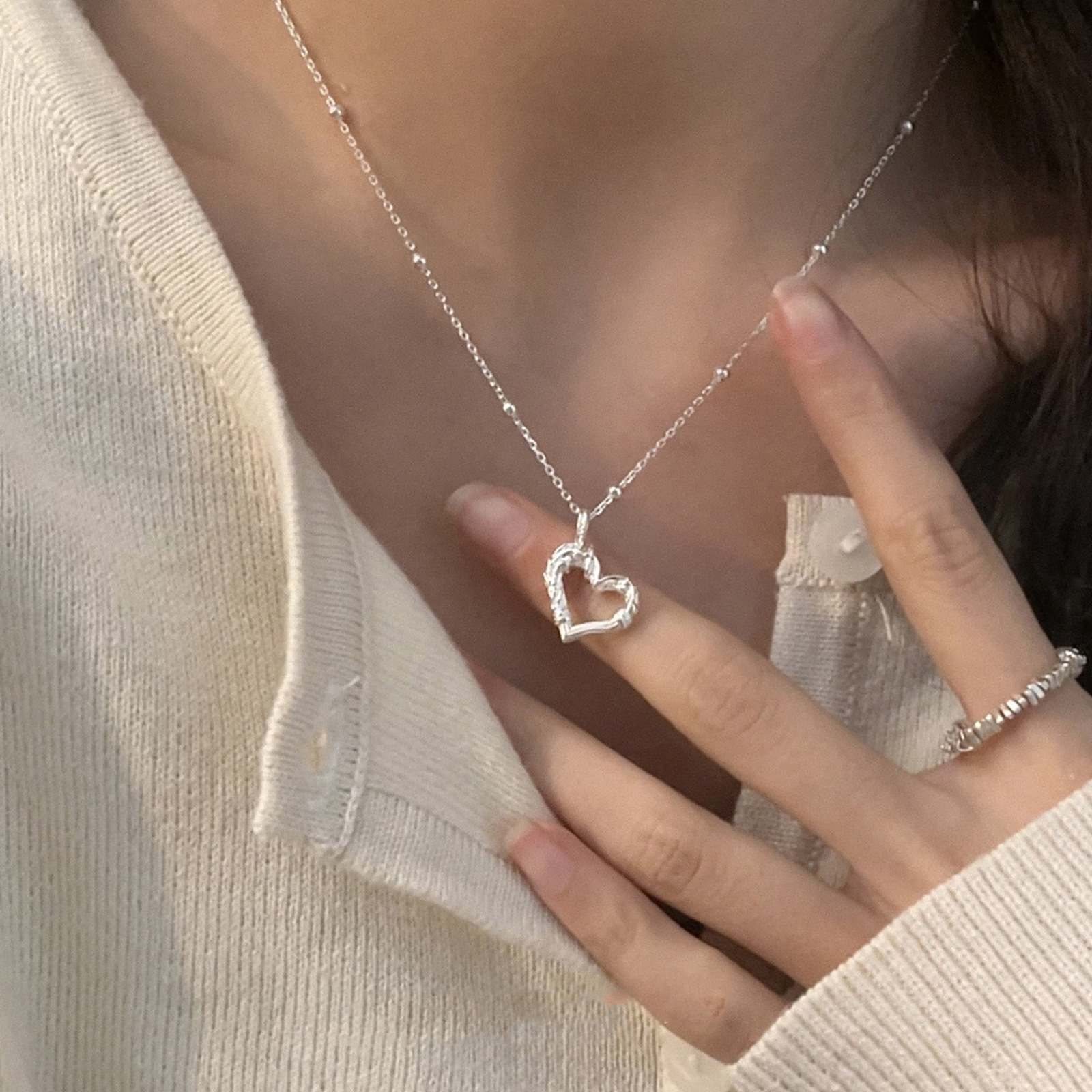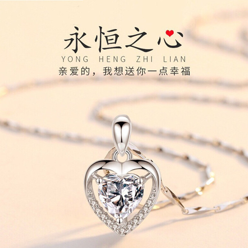 直播货源镀Pt950白金色永恒之心吊坠女锁骨链ins时尚百搭爱心项坠