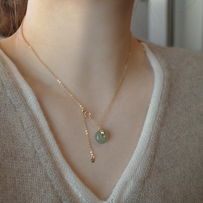 和田玉珠平安扣项链女生高级感小众百搭新中式复古锁骨链吊坠批发