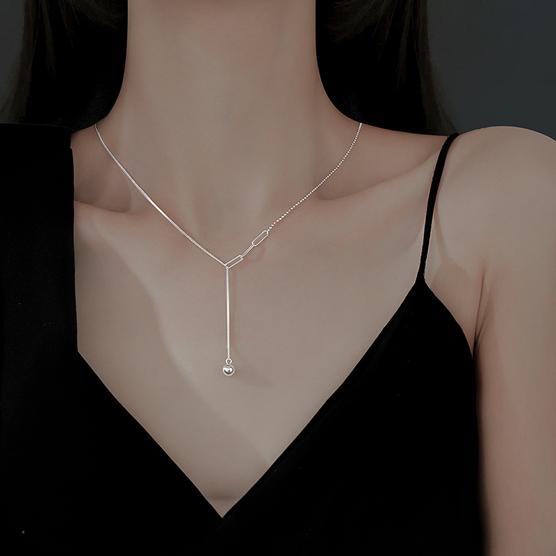 实心水滴球抽拉项链女士时尚个性ins风小众设计感气质流苏锁骨链
