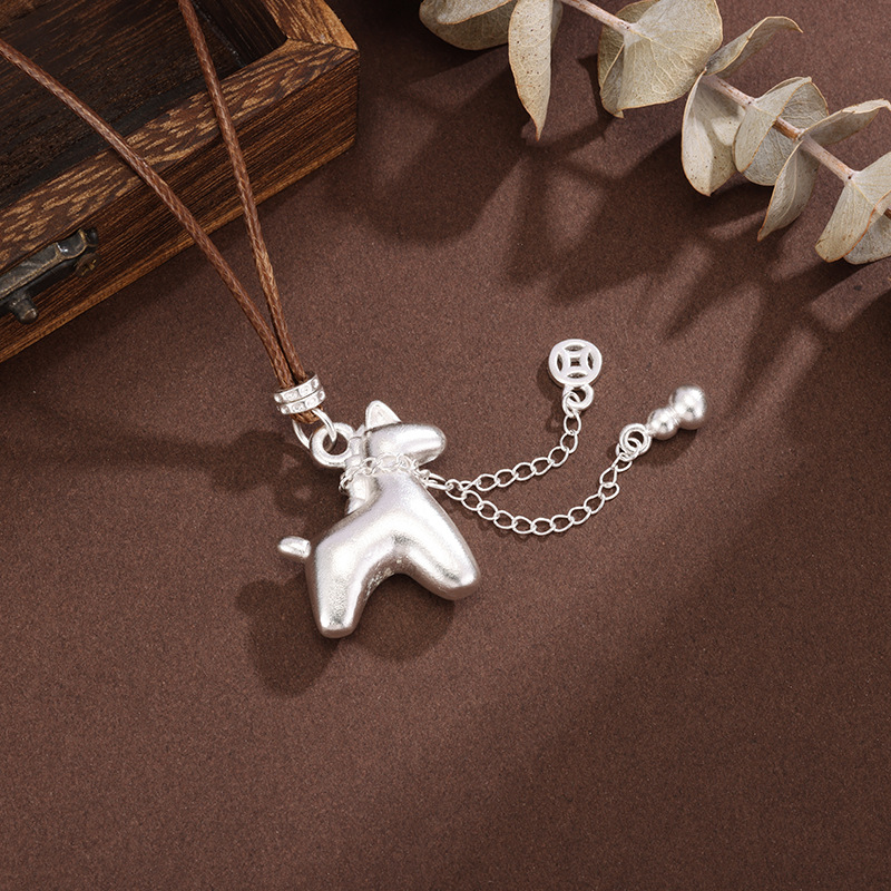 白铜镀银吊坠小马驹吊坠马上有钱银首饰项链编绳可调节马年送礼