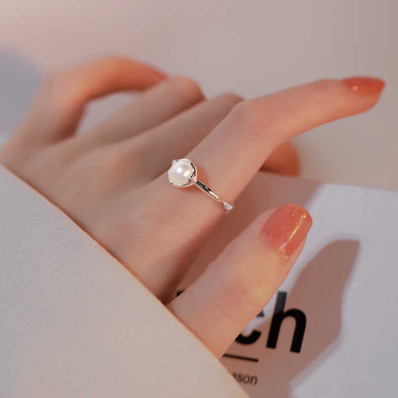 花苞珍珠戒指女士时尚小众设计感ins风个性开口可调节指环手饰品