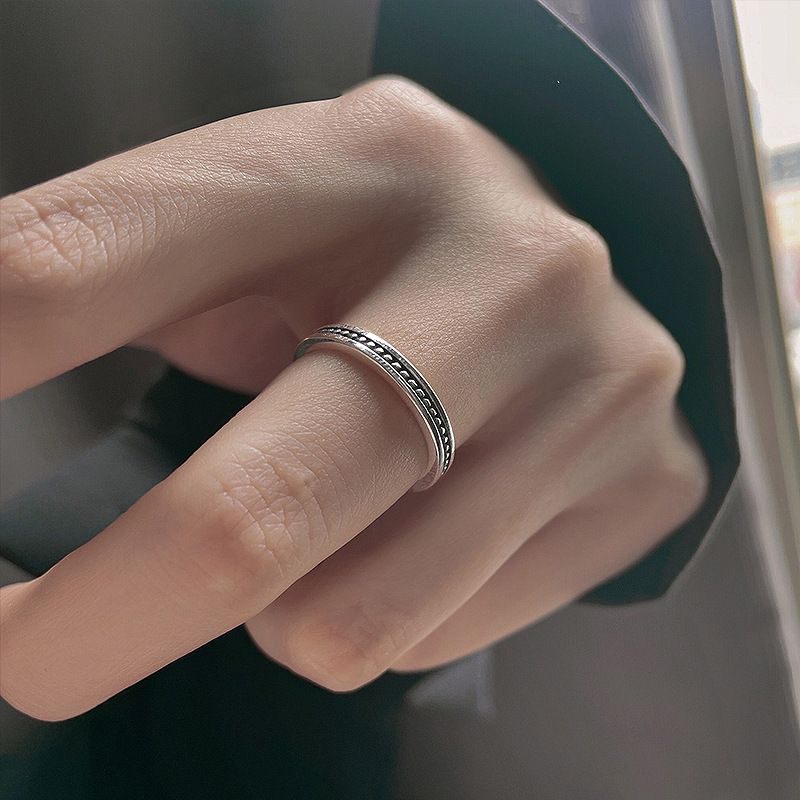 复古圆点戒指女高级感简约ins风个性小众古银指环开口戒素圈素戒