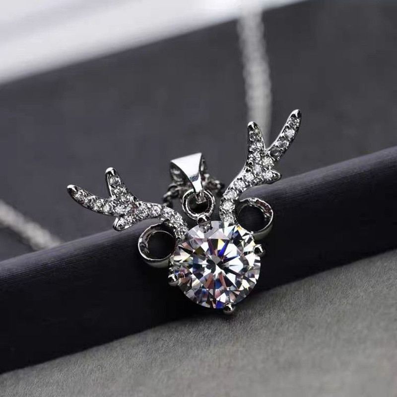 直播货源镀pt950铂金色满钻一路有你鹿角吊坠女锁骨链 送女友礼物