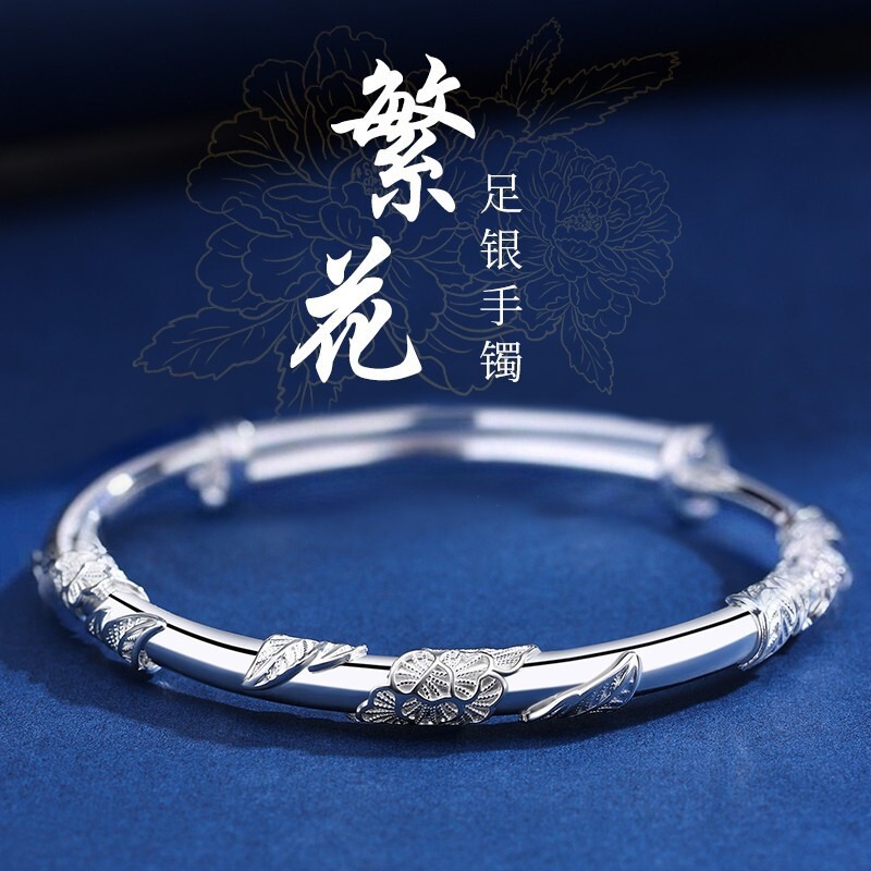 繁花似锦手镯女生小众高级感百搭批发古风实心开口推拉新中式饰品