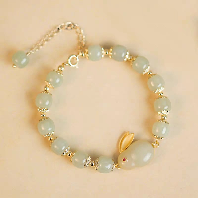 天然和田玉玉兔手链女生夏小兔子玉石手串珠七夕情人节礼物送女友