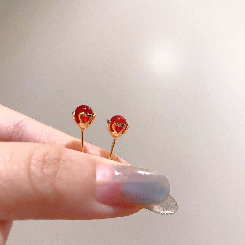 红玛瑙耳钉耳环女高级简约小众设计感小巧精致复古石榴红耳饰批发
