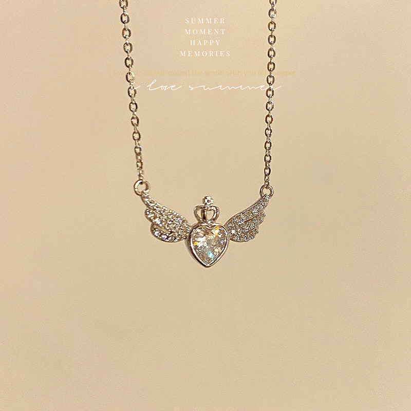 爱心皇冠天使之翼项链女生小众高级感轻奢时尚批发ins风锁骨链潮