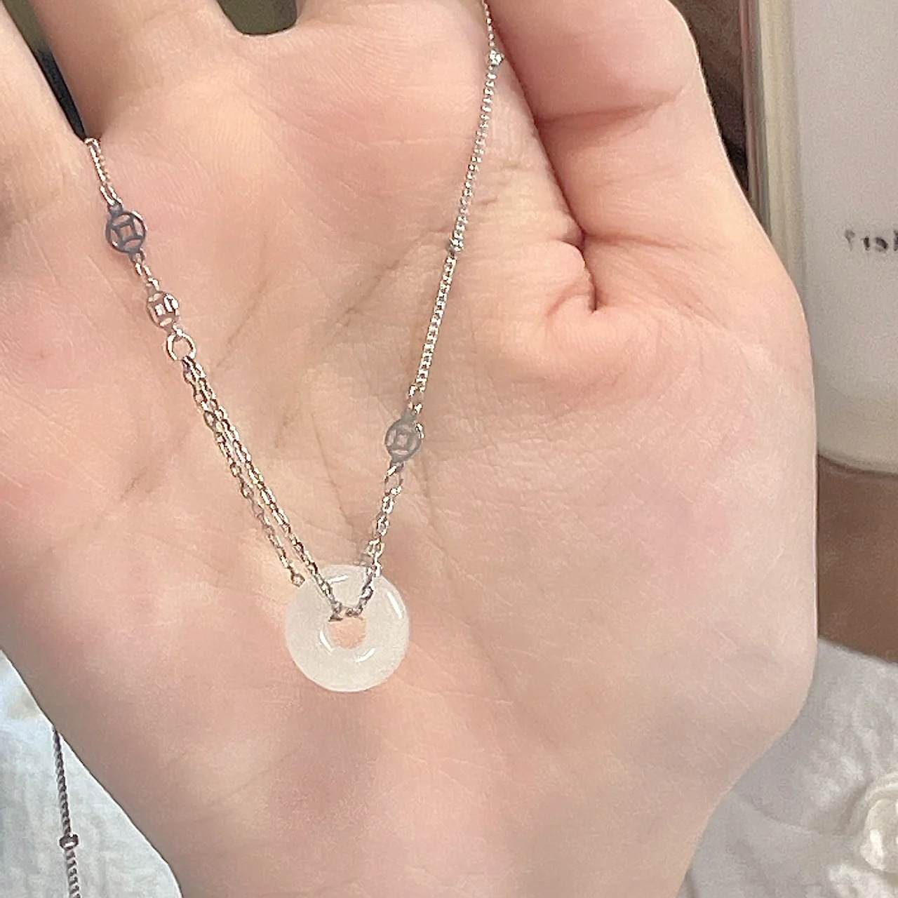 白玉平安扣项链女轻奢小众百搭高级感批发新中式和田玉吊坠锁骨链