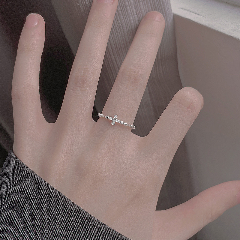 满钻十字架戒指女士小众设计感时尚个性ins风精致开口可调节指环