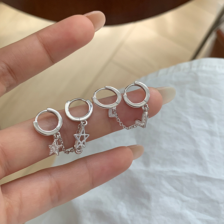 闪钻爱心五角星双耳洞耳扣耳环女士时尚个性ins风小众设计感耳饰