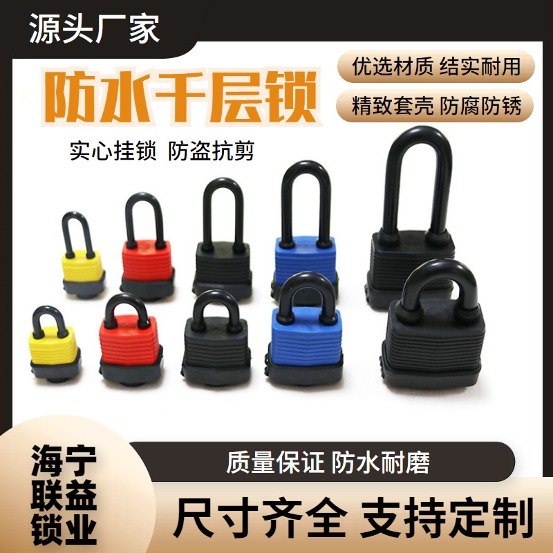 工厂户外防水千层锁塑料套壳挂锁头室外防尘防锈全铜锁芯锁具批发
