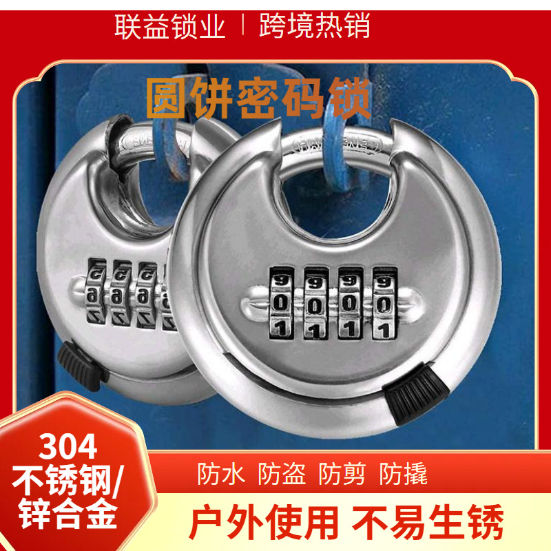 防水防锈安全防盗挂锁304不锈钢圆饼密码锁门锁船舶锁四位密码锁