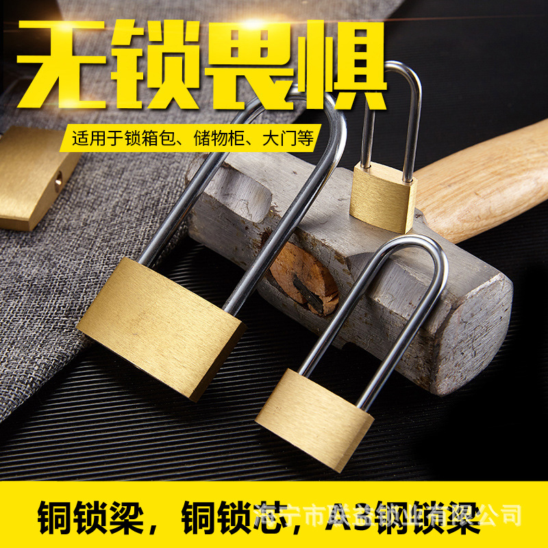 黄铜挂锁薄型锁长梁超长梁防盗宿舍门电箱锁安全可靠