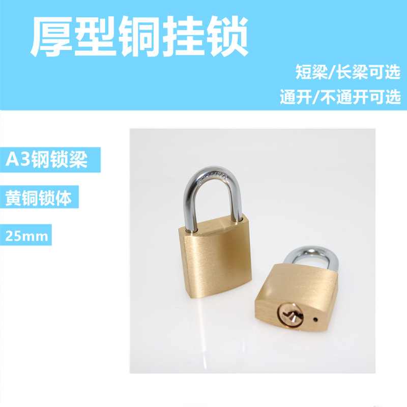 黄铜挂锁白板锁无牌防盗锁头不互开挂锁30mm薄型挂锁宿舍门锁