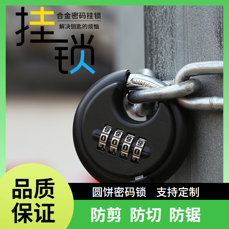 锌合金密码挂锁跨境防锈不锈钢元宝锁圆饼密码锁挂锁圆锁户外防水
