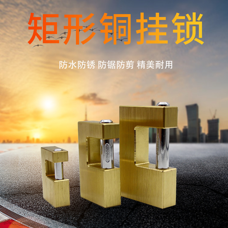 纯铜矩形挂锁横开90mm大锁头集装箱托运锁防剪防切防盗仓库门锁