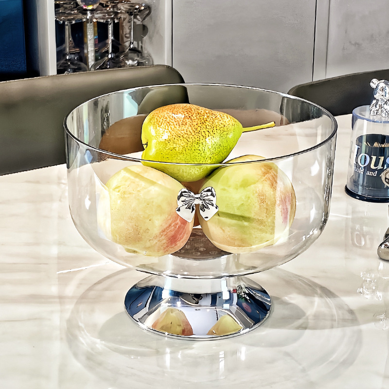 轻奢风家用高脚水果盘高级感透明高颜值果盘客厅茶几糖果干果盘