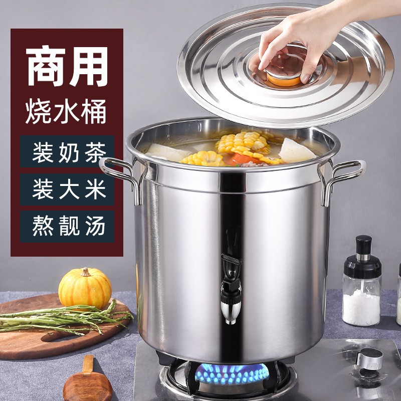 跨境汤桶带水龙头不锈钢桶圆桶带盖煮水桶商用电磁炉大汤锅卤肉桶