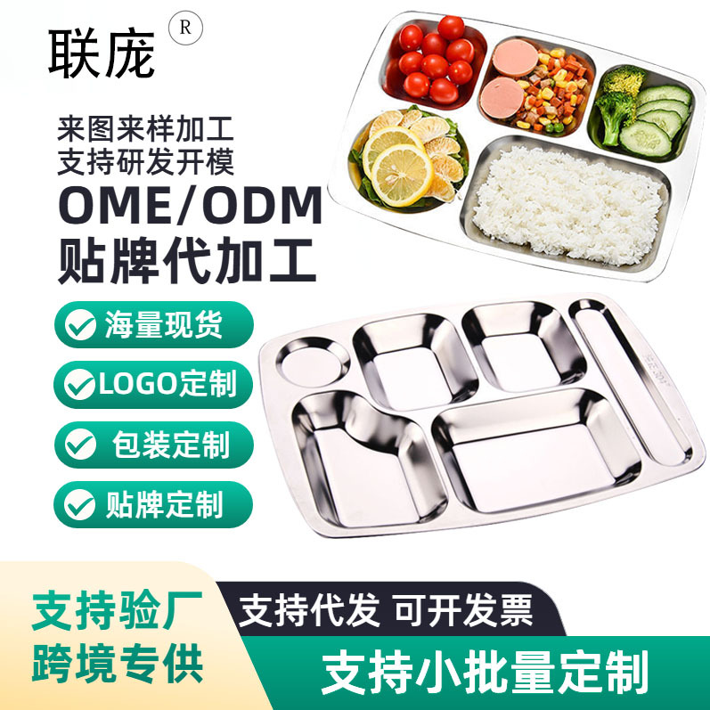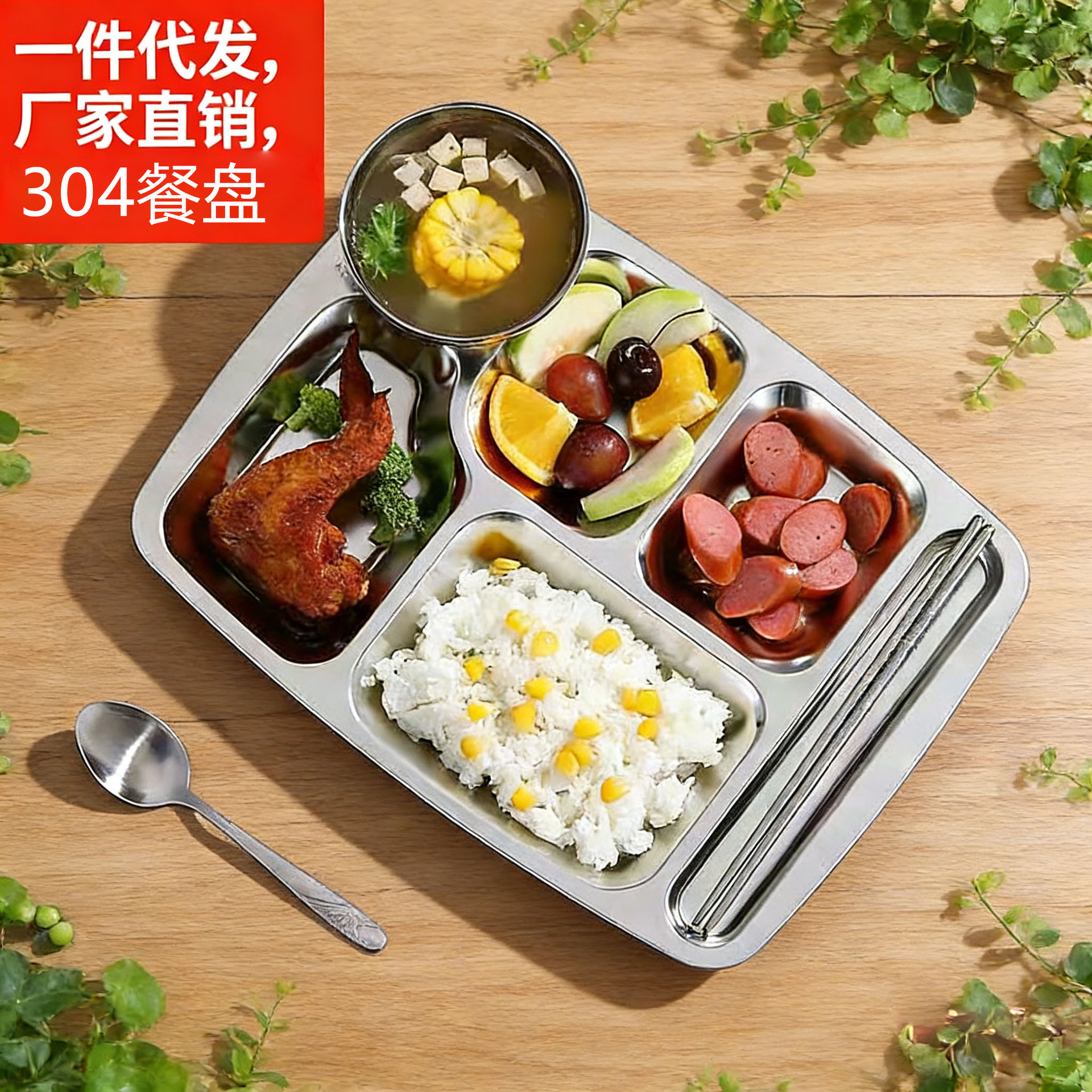 批发不锈钢分格餐盘食堂专用快餐盘学生分隔餐用饭盘托盘外贸出口